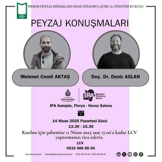 On behalf of the TMMOB Istanbul Chamber of Landscape Architects, he called it "Landscape Talks." These are truly excellent speakers for landscape architects and landscape architecture… Mehmet Cemil Aktaş is a well-known and engaging professional we know well. We had the opportunity to listen to Assoc. Prof. Dr. Deniz Aslan at Peyzaj Istanbul 2024. Both are professionals with a wealth of insights. They're not to be missed…